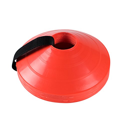 These sports cones are made of durable orange plastic, easy to see thanks to the bright color. These make excellent soccer cones for use as a running course or a soccer goal post, agility cones, activity cones, football equipment, basketball gear and overall great sports equipment and sports accessories for anyone.