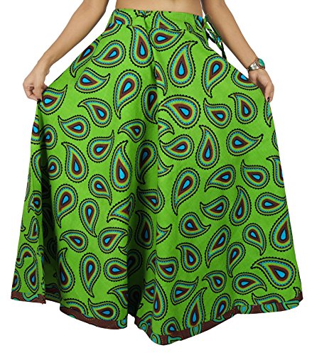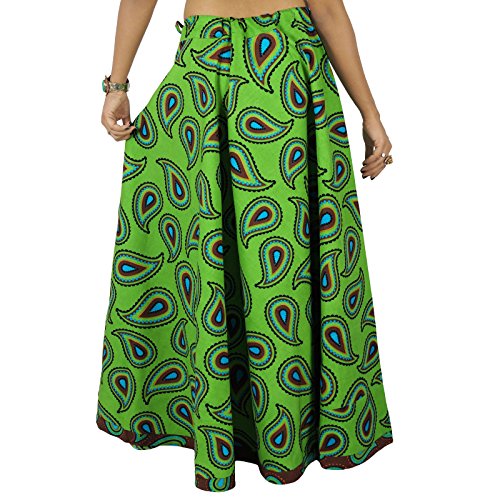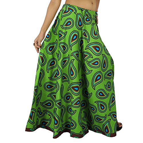 Binding : Apparel Product Description * This Long Cotton Skirt Has A Wonderful Drape That Flows Beautifully As You Walk It Is A Full Skirt With Drawstring. * Perfect For Carefree Summer Days Festive Nights On The A Campfire Easy And Breezy. * Fabric - Cotton. * Pattern - Paisley . * Color - Green With Bits Of Blue And Brown. * Length - 40" Inches. * Made In India.