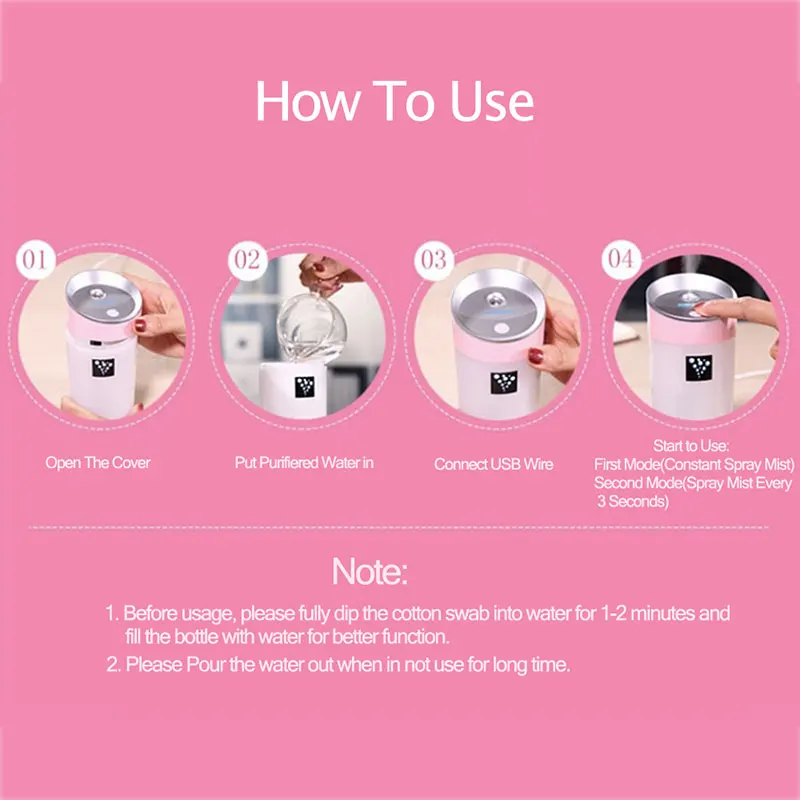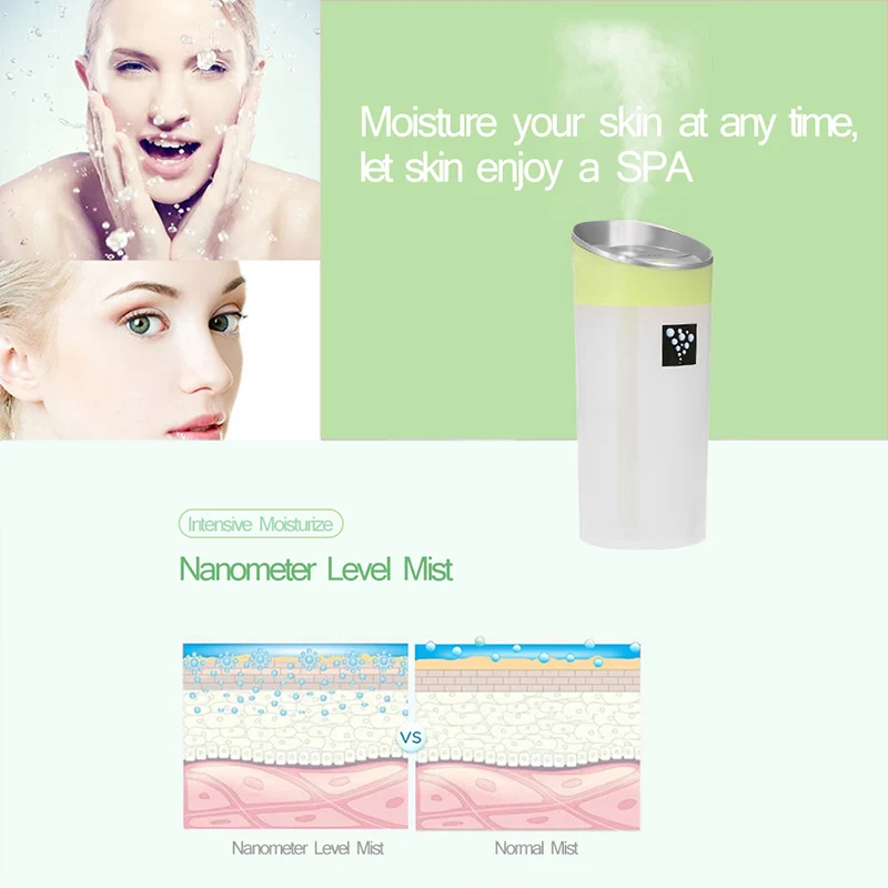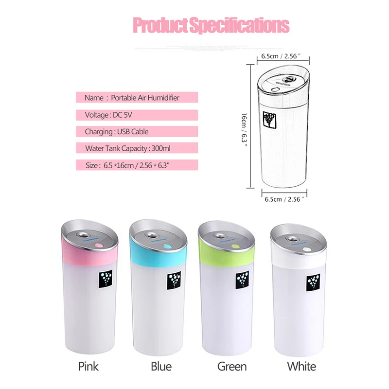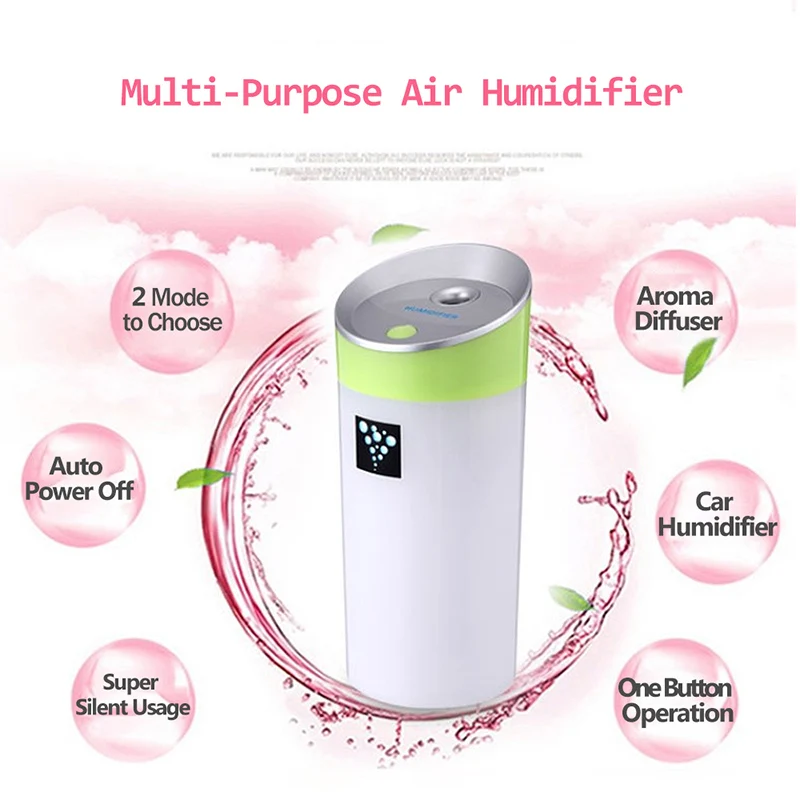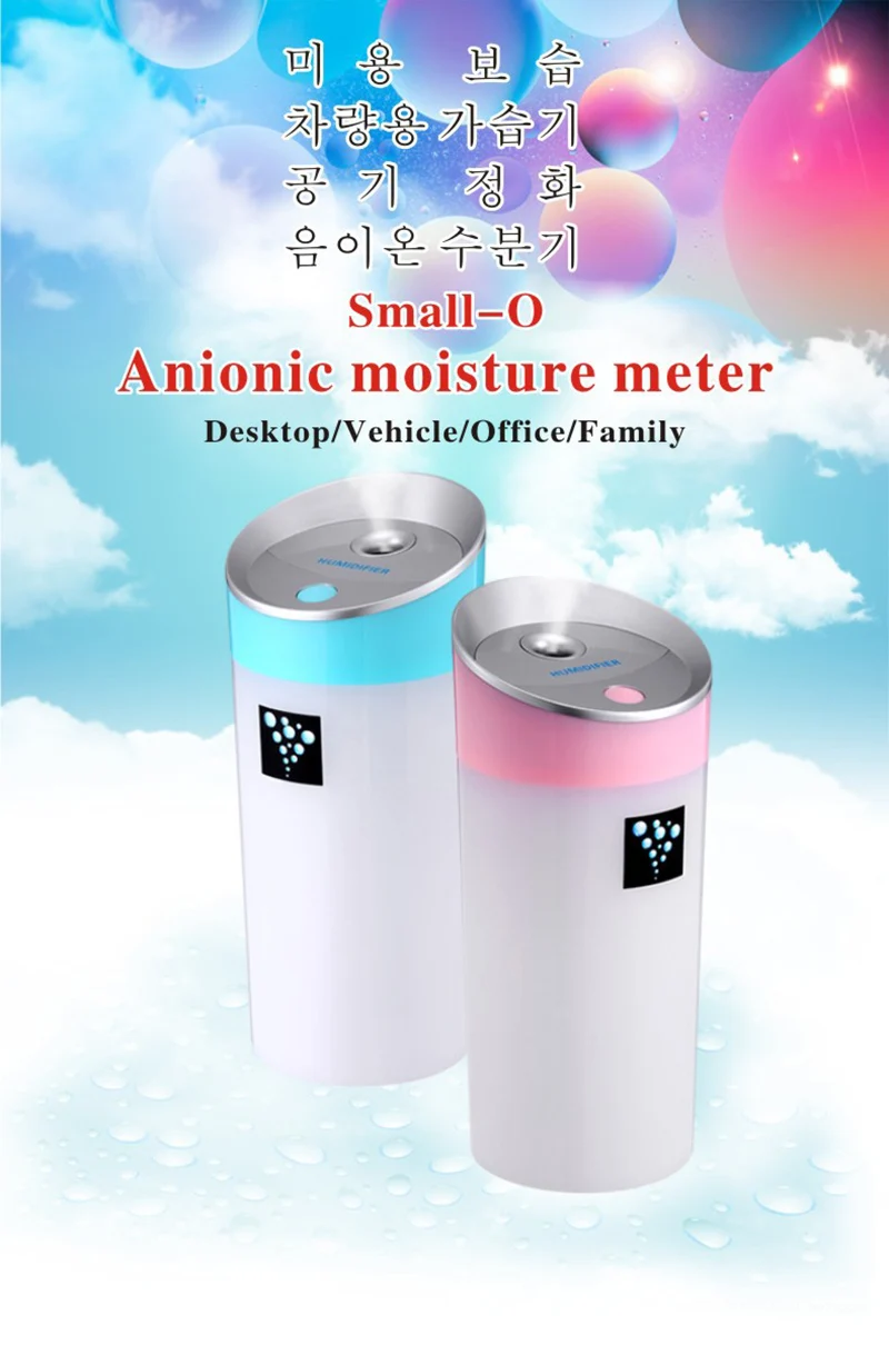 This is a portable anion humidifier for both room or car to use. It has 2 modes to spray mist to suit your needs and has LED light to indicate working situation. Anion helps to remove unfavorable odors u0026amp; bacteria, which is better than normal humidifier on the market. With this humidifier, you'll never feel dry at any season and your skin will greatly be moisturized. For more relaxing function, you can use it as a Aroma diffuser by dropping essential oil into it to make air fresher and have a good mood.
