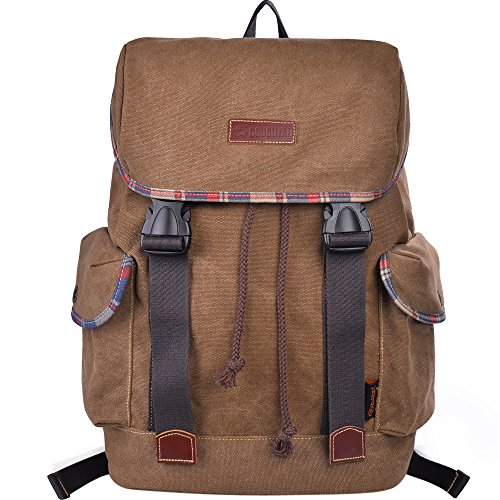 -. Brand : DGY -. ClothingSize : One Size -. Department : unisex-adult -. Feature : Drawstring closure with flap front and two push-lock for added security. / Dimension: Approx.12.2 x 6.3 x 15.4 inches; 1.9 pounds. / Interior features back wall zip pocket, two functional slip pockets. Padded laptop sleeve fits most 15-inch laptops. / Exterior two side flap pockets for additional storage. / Padded, adjustable shoulder straps for added comfort and breathable. -. ProductGroup : Apparel -. ProductTypeName : LAGE -. Size : One Size -. Title : DGY Vintage Backpack Canvas Backpack School Backpack Rucksack Travel Backpack G00131