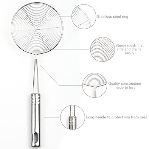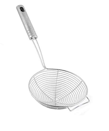 Studio : Starnk Publisher : Starnk Binding : Kitchen Product Description Strainers are an essential tool in any busy kitchen; not only can they be used for straining pasta, but they can be used for a variety of tasks such as rinsing grains and beans, and fruits and straining pasta, rice, lentils, jams, lumpy sauces and any other food preparation. This strainer features a sturdy outer framework and handle.The concave net catches food items securely while releasing water, oil and other residue.The smooth, polished steel ring rests evenly atop bowls and pots so that you can multi-task while your food drains and strains,So you cannot miss it. Features: Dishwasher-safe Convenient hanging hole for storage. Mesh strainer is perfect for skimming and draining stock and sauces or straining loose vegetables. This strainer is very convenient to choose for your kitchen and is perfect for sifting and straining wet or dry ingredients 0