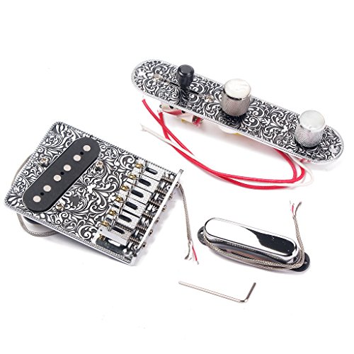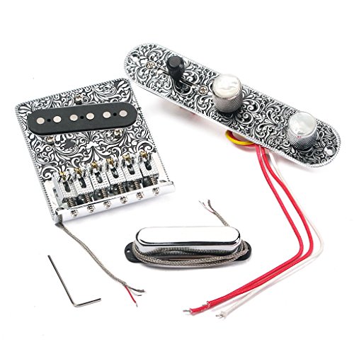 Description: - Set of control line pickup bridge with pickup for TL electric guitars, black carved flower patterns design and white shell button - Neck Pickup: Alinco 3 Magnet Pole Pieces for smother warmer Texas Blues Tone - Bridge with pickup: Alinco 5 Magnet Pole Pieces for a powerful punch. Fully charged just like the pickups used in the 50s and 60s - Pickups are designed after 50s Telecaster. Single coils using time correct 42 AWG Plain Enamel coil wire for the bridge pickup and 43 AWG Plain Enamel coil wire for the neck - Dimension: Please see the picture. - Material: Zinc Alloy - Color: Black