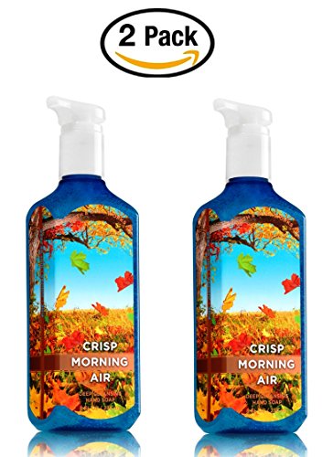 -. Binding : Misc. -. Brand : Bath & Body Works -. Color : Blue -. EAN : 0795525282122 -. Feature : A fresh breeze of pine, juniper & pear evokes a quiet fall morning. / You receive TWO (2) Deep Cleansing Hand Soaps -- 8 fl oz each. / The new, premium formula in this Crisp Morning Air Hand Soap is like a 60-second manicure - our cleanest rinse ever leaves hands feeling soft, smooth and lightly scented! / The new Deep Cleansing Hand Soap is specially formulated with skin-renewing microspheres to effectively cleanse and exfoliate - also enriched with nourishing Aloe and protective Vitamin E. / Seasonally Discontinued Bath & Body Works scent - available for a limited time only. -. Label : Bath and Body Works -. Manufacturer : Bath and Body Works -. MPN : B013FTSYF0 -. PackageQuantity : 1 -. PartNumber : B013FTSYF0 -. ProductGroup : Beauty -. ProductTypeName : BEAUTY -. Publisher : Bath and Body Works -. Studio : Bath and Body Works -. Title : Bath & Body Works Crisp Morning Hand Soap - Pack of 2 Crisp Morning Air Deep Cleansing Hand Soaps -. UPC : 795525282122