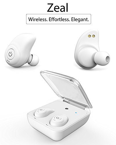 -. Title : Wireless Earbuds, Paxcess Zeal True Wireless Bluetooth V4.1 Headset Mini Sports Earphone with Mic & Charging Dock for Workout Gym Running Jogging (White)