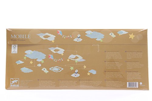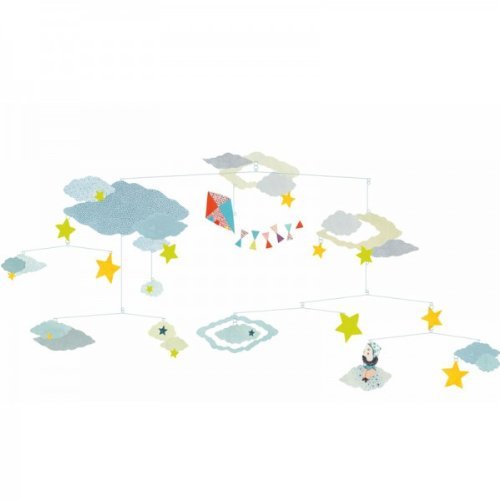 Djeco Hanging Mobile, Head in the Clouds is a decorative hanging room mobile that comes with different assorted elements. It is made of metal and plastic.