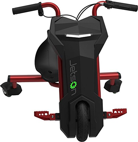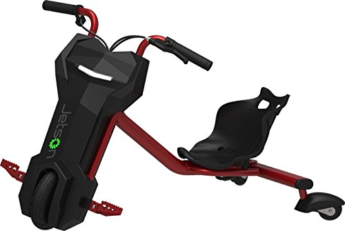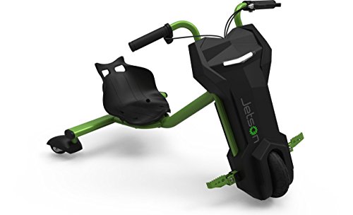The coolest kid on the block will be scooting around on the jetson drifter! this 3-wheeled electric scooter is fun, stylish and most importantly, will keep your kids busy for hours. Designed with fun and crazy patterns and colors, this scooter pops with attitude. The low-to-the-ground safety seat, hand-brake, and LED light ensure visibility and control. See your kids go from a beginner to a skilled drifter in no time. Running on a rechargeable battery makes this scooter the eco-friendly choice and the hottest Gift this season! specs & features - motor size: 120 watts battery: 12 Volt, 9Ah range per charge: 3-5 miles charge time: 4 hours max speed: 6 MPH product weight: 29 lbs. Weight Limit: 110 lbs. Wheel size: 5" 2-speed button throttle front LED light dimensions: 37" x 24" x 24" recommended for ages 8-15 water resistant plugs into any standard outlet 100% electric and eco-friendly pre-charged and ready to rideFeature