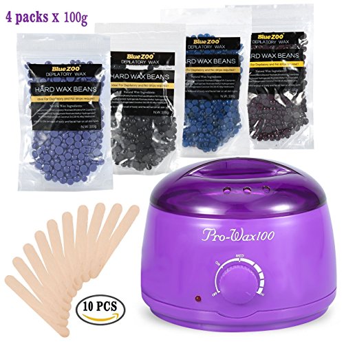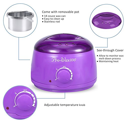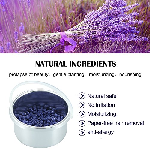 500ML Hair Removal Hot Paraffin Warmer Waxing Heater + 100g/Bag 4 Different Types of Hard Wax Beans Special for Men and Women Depilatory Use (Purple)