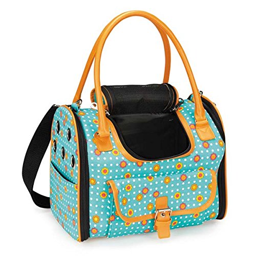 -. Binding : Misc. -. Brand : East Side Collection -. Color : Turquoise -. EAN : 0721343608615 -. Feature : Carrier features PU accents on the trim and handles / Mesh on the doors and top windows for added ventilation / Includes self-locking zippers, removable berber mat and an interior collar clip for added safety -. Label : East Side Collection -. Manufacturer : East Side Collection -. Model : ZA5146 14 43 -. MPN : ZA5146 14 43 -. NumberOfItems : 1 -. PackageQuantity : 1 -. PartNumber : ZA5146 14 43 -. ProductGroup : Pet Products -. ProductTypeName : PET_SUPPLIES -. Publisher : East Side Collection -. Size : Small -. Studio : East Side Collection -. Title : Blooming Brights Carrier Size: Small (10.5" H x 12.5" W x 8" D) -. UPC : 721343608615