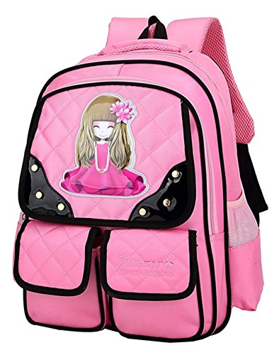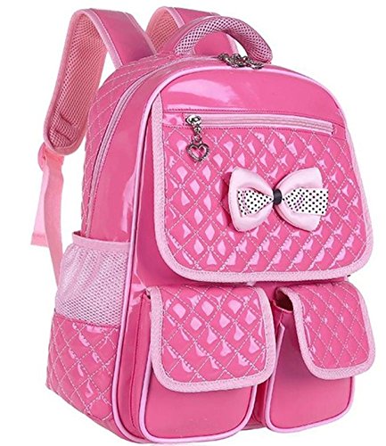 Product Description This series of backpacks are designed specially for primary girls students. They are featured by the below key characteristics: Sturdy and Lovely Made of high quality PU and polyester, it is sturdy enough for years of wear. Bow decoration and plaid design in the front, together with bright color, makes every girl who wears it a lovely and elegant princess! Roomy and Practical Large main compartment can hold textbooks, notebooks, paper books, Ipad and others; two front hasp pockets are for small items such as cell phone and MP3/MP4; another front zipper pocket at top is for small things ready for use such as tissues and so on; two side elastic pockets are for bottle/umbrella. Girls will find it practical and roomy enough for their daily necessities for school. Orthopedic Protective Design S-curve 20MM sponge-padded wide shoulder strap ensures comfortable wear; orthopedic design will protect girls' backbone and lighten the pressure; padded top handle is also comfortable for you. Note: Since the size above is measured by hand, the size of the actual item you received could be slightly different from the size above. Meanwhile, please be reminded that due to lighting effects, monitor's brightness / contrast settings etc, there could be some slight differences in the color tone of the pictures and the actual item.