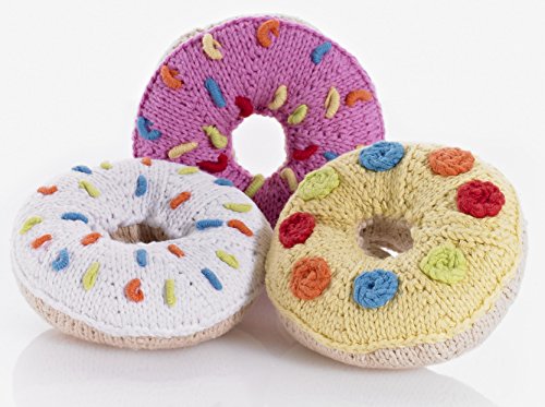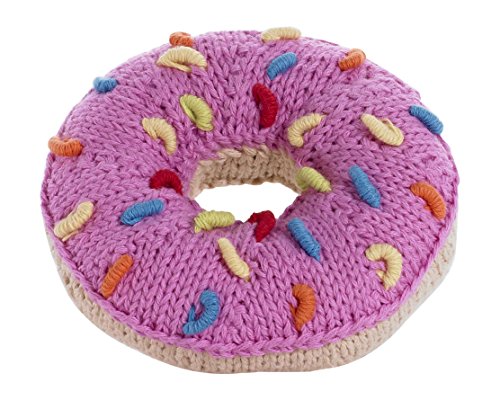 Highly detailed Donut Rattle has pink icing and colored sprinkles and makes a soft rattle sound