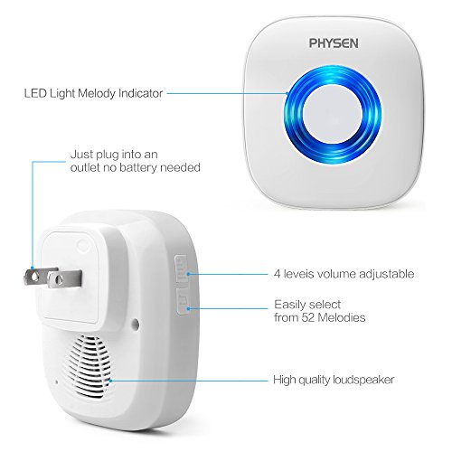 - Receiver:4 levels of adjustable volume from 25-100 dB [much louder].Offer 52 elegant or custom music,from the traditional"Ding Dong" to various well know chimes [more choices].Build in blue led light for the hearing impaired.