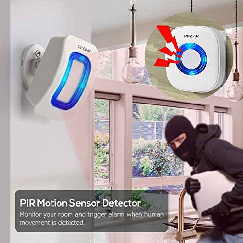PHYSEN Wireless Home Security Driveway Alarm,Motion Sensor Detect Alert Store Door Entry Chime with 2 Motion Sensors and 3 Receivers,500ft Range,52 Chimes,4 Volume Levels,Build in LED Indicators