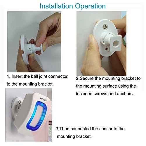 - Take care of you family: Communication range of up to 150m/500ft (the distance from the sensors to the receiver/alarm/chime) and detection range of the infrared sensor of approximately 5m/16.4ft range x 110°to keep you informed and safe.