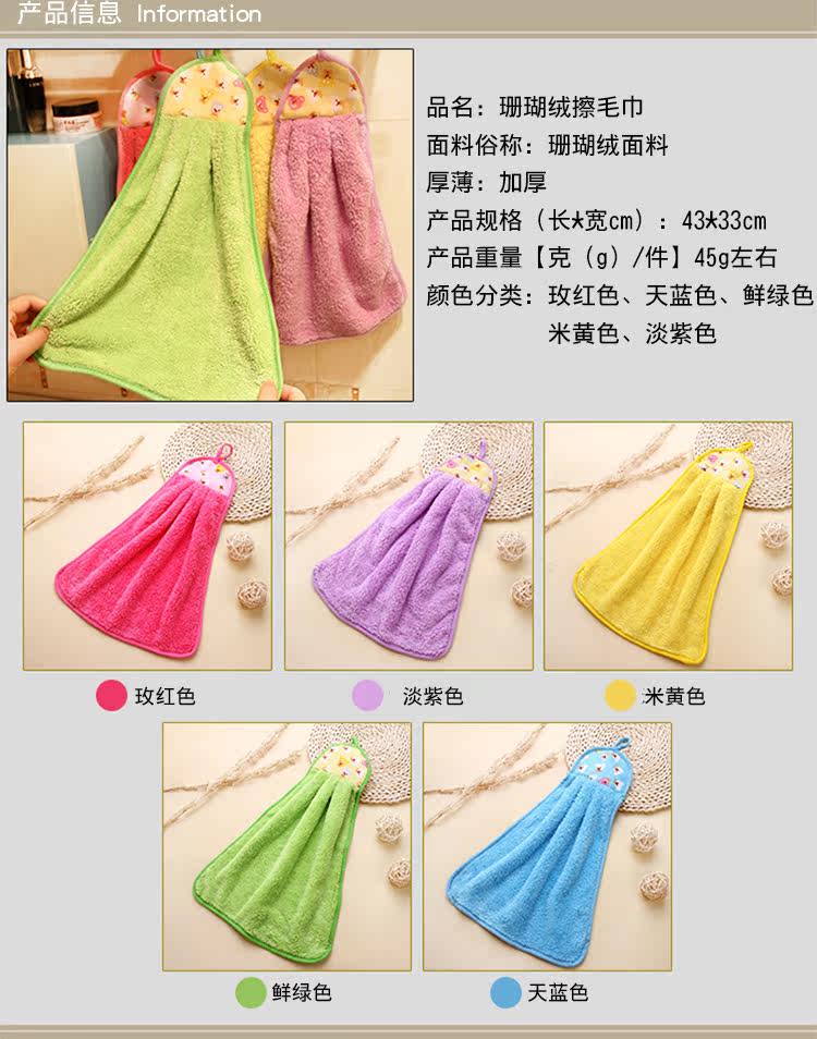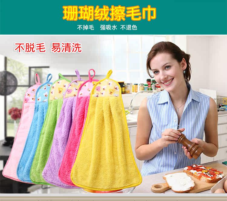悬挂式抹布加厚吸水擦手巾珊瑚绒厨房不沾油洗碗布清洁布