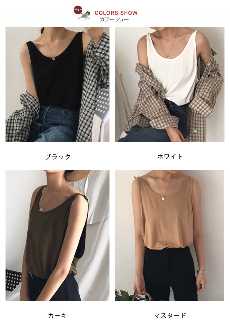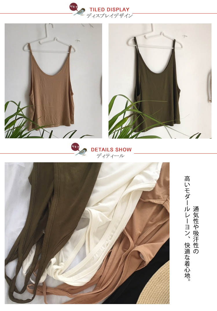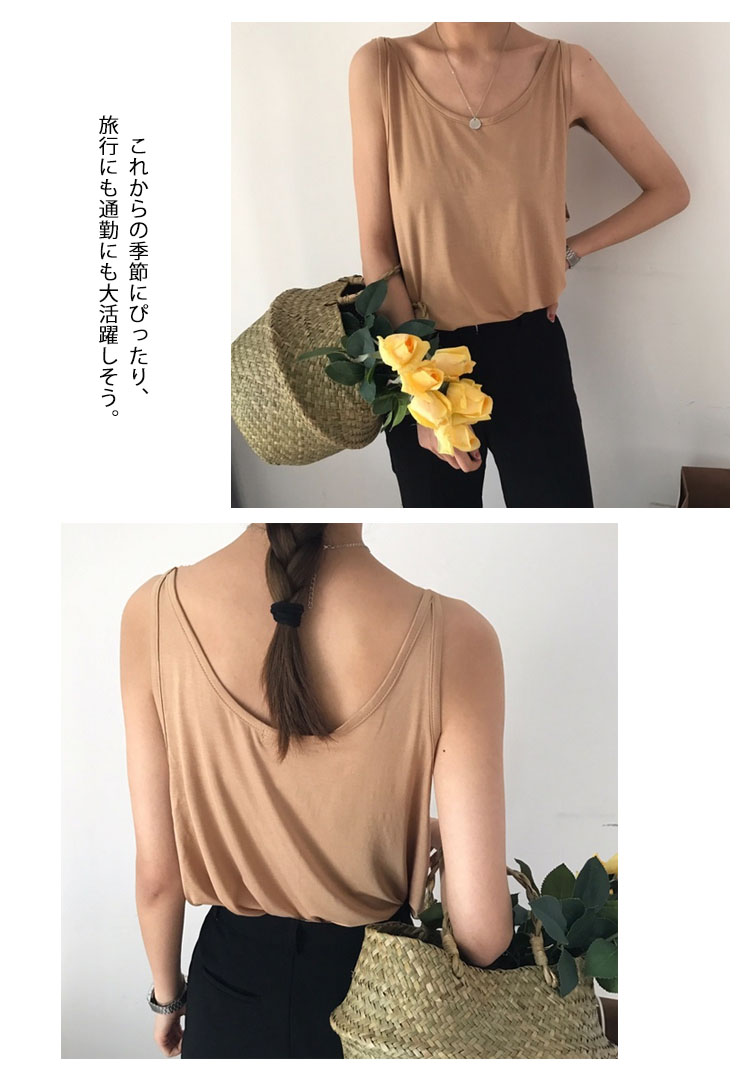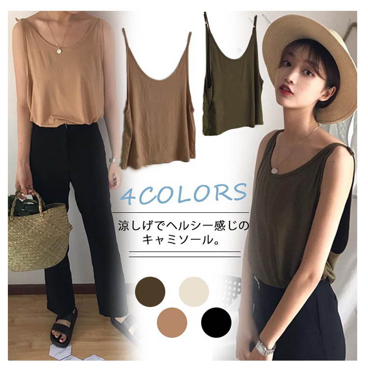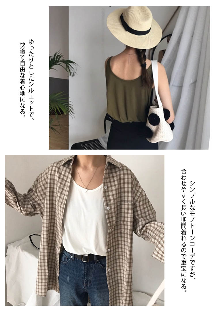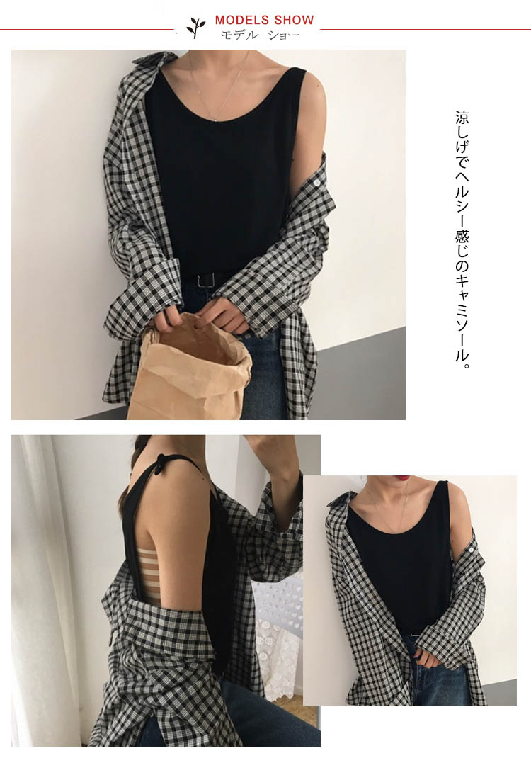 | 涼しげでヘルシー感じのキャミソール。ゆったりとしたシルエットで、快適で自由な着心地になる。シンプルなモノトーンコーデですが、合わせやすく長い期間着れるので重宝になる。これからの季節にぴったり、旅行にも通勤にも大活躍しそう。 | |