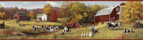 - Title : Wallpaper Border Cow Pasture Red Barns Farm Country Americana Tractor Farmer Dog