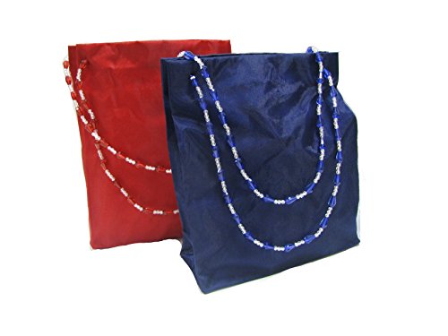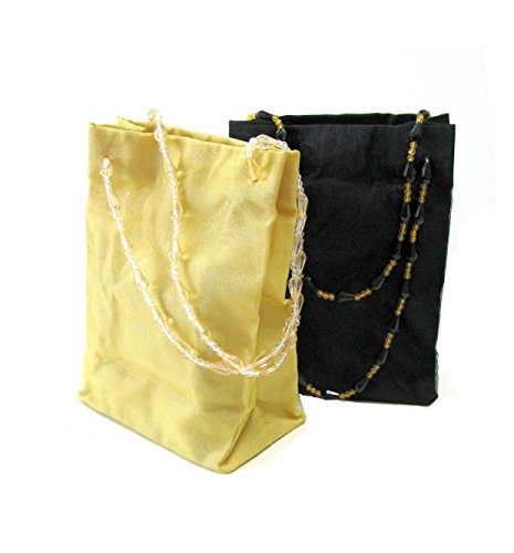 Linpeng Beaded Handles Sheer Ribbon Gift Bag, Medium