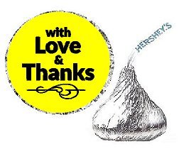 216ct With Love and Thanks Birthday / Wedding Party Favor Decorative Stickers / Labels for Hersheys Kisses Yellow