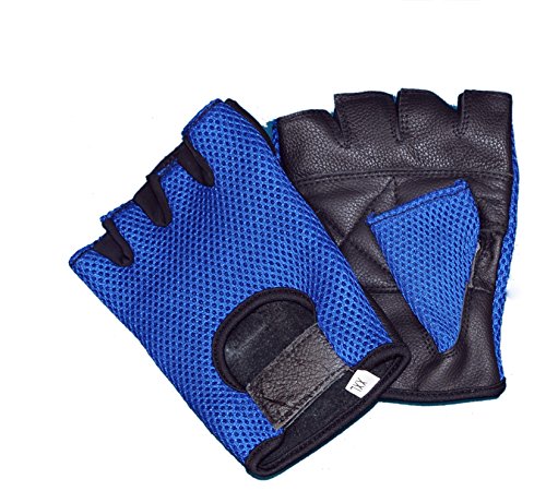 -. Title : LEATHER MESH FINGERLESS WEIGHT LIFTING EXERCISE GYM WHEELCHAIR GLOVES BLACK/BLUE WLG-021