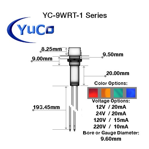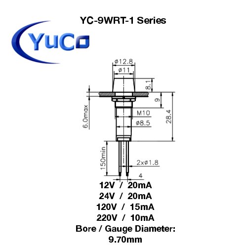 10 YC-9WRT-1W-120-10 YuCo CE LISTED 9MM COMPACT PANEL MOUNT INDICATOR LED PILOT LIGHT WHITE 120V AC