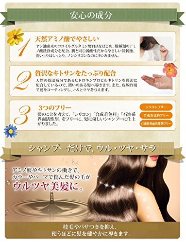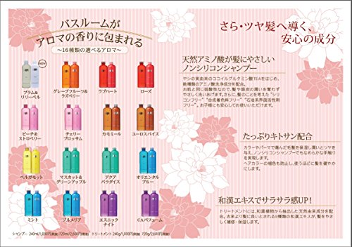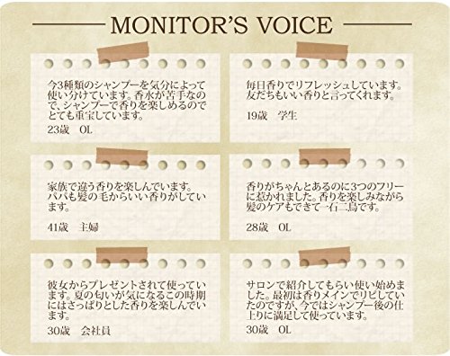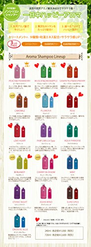 -. Feature : 天然アミノ酸+キトサン配合でつるつるの洗い上がり / カラーの褪色を防止 / 枝毛・パサつきの気になる髪に / ノンシリコン、合成着色料フリー、石油系界面活性剤フリーでお子様にも安心! / 全16種類の香り