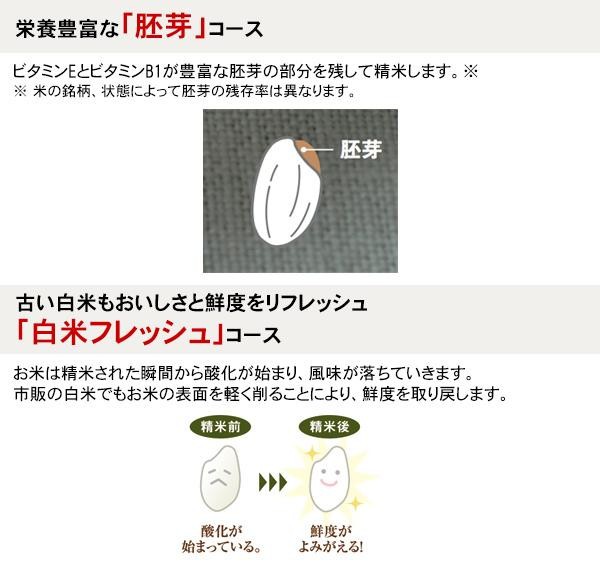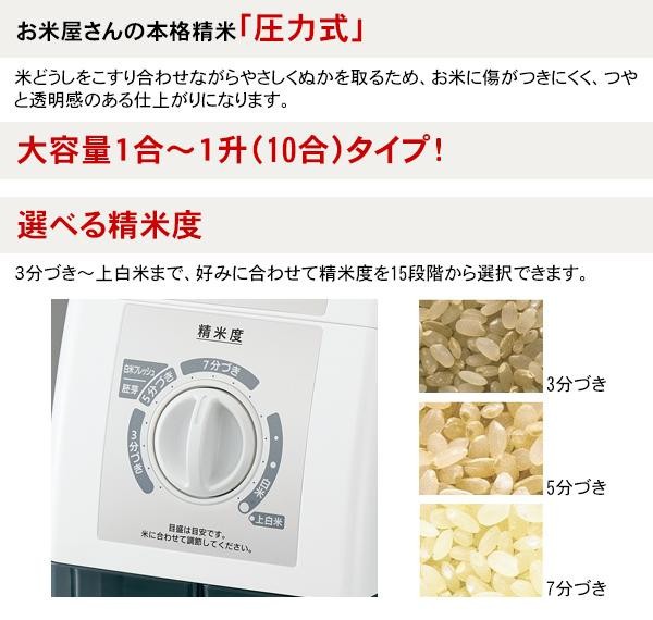 | 仕様 | 電源:交流100V・50/60Hz 消費電力(50/60Hz):255/285W 精米容量:1合~1升(玄米170~1700g) 電源コード:1.5m 精米時間(50/60Hz):約11分/約10分(玄米1700g→白米) 温度ヒューズ:167度(2個) |