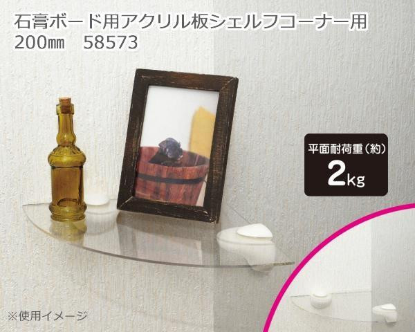 石膏ボード用のアクリル棚。外した後も壁面のキズ跡が目立ちにくい専用固定ピンを使用。コインなどで簡単に取付けが行えます。キッチンや洗面所、リビングなど、クリアな外観で空間を広く演出します。 |