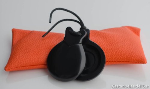 Pair Flamenco Castanets Fibra concierto doble caja- Size nº4- by Castañuelas del SUR.Black fiberglass Concert model with - double box- Includes a carrying case