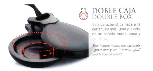 Double box.This feature makes the castanets lighter and gives it a more gruff and flamenco sound.