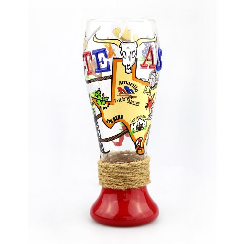 UNIQUE DESIGN Glass features a colorful & artistic design highlighting the wonderful state of Texas and topped of with wrapped rope detail