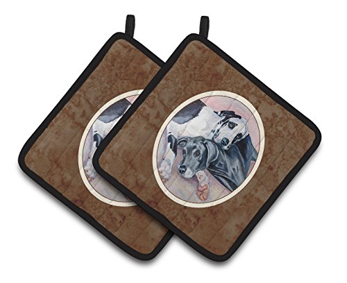 Caroline's Treasures black & Harlequin Great Dane Pair of Pot Holders 7164PTHD, 7.5HX7.5W, Multicolor
