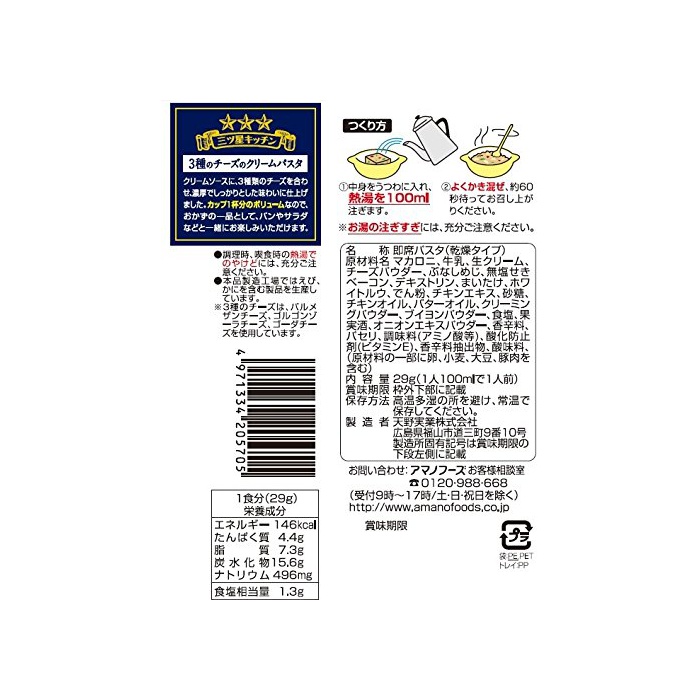 원본상품명: アマノフ?ズ 三ツ星キッチン 3種のチ?ズのクリ?ムパスタ 29g×4個