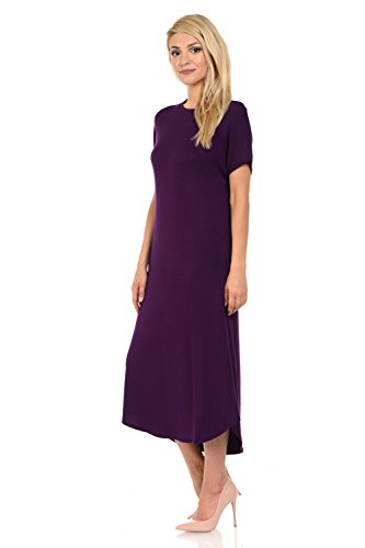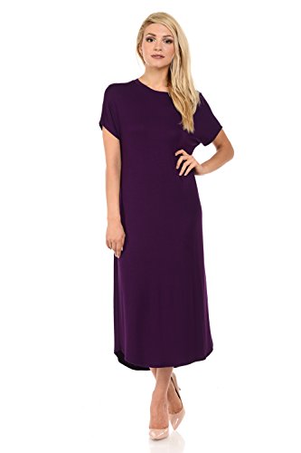 This dress features banded crew neckline, short sleeves, round hem and pull over style. It is made with a soft jersey knit for better drape and stretch. Accessories not included.