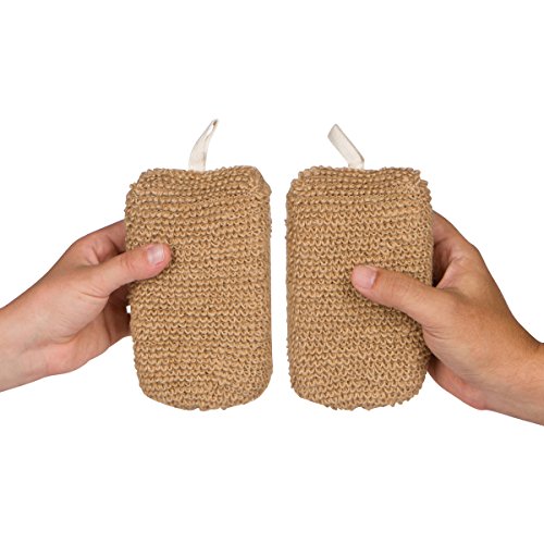 DeLaine’s Exfoliating Body Scrubber - Natural Hemp Covered Sponges - Set of 2 To Double Your Pleasure - Luxurious Skin Care for Women and Men - Hygienic - Long Lasting - Extra Sudsy - Machine Wash