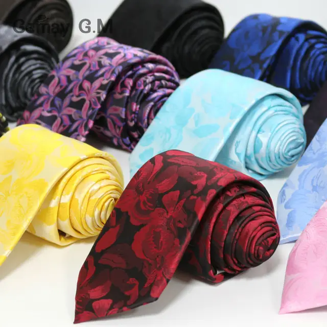 | [해외]높은 품질의 최신 폴리 짠 꽃 넥타이 남성 패션 클래식 남자의 넥타이 웨딩 7 센치메터 폭 신랑 넥타이 |