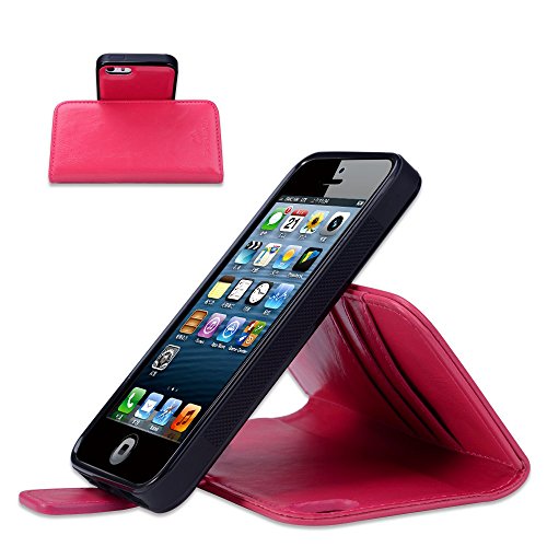 SHANSHUI Detachable 2in1 RFID Blocking Holster with Three Rfid Card Holders and One Cash Pocket with Slim Back Cover for iPhone SE,5 and 5S-Rose red