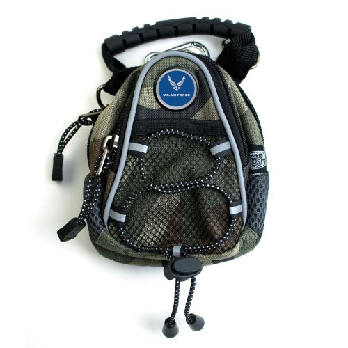 Super versatile black mini day pack is the perfect carry-all for anyone. Works great as a golfers valuables pouch or ditty bag. Constructed of durable nylon material. Air Force logo is a great way to show your patriotism and the day pack makes a great gift item.