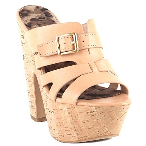 Product DescriptionSam Edelman *Chase* leather high heel sandals. Gold-tone buckle. Decorative cutout and needle stitch detail. Open toe design. Cork platform heel. Cushioned insole. Leather lining. Cork midsole. Man-made sole.0