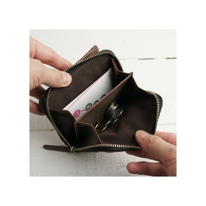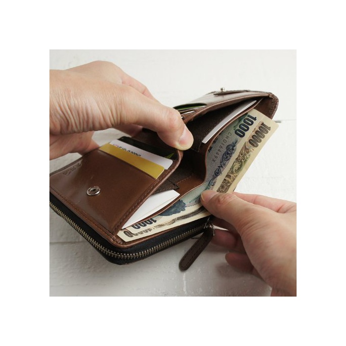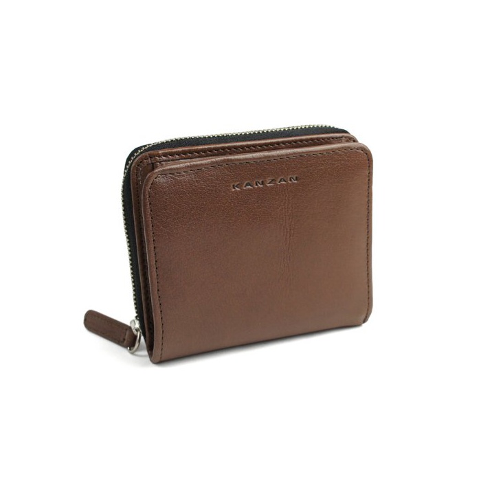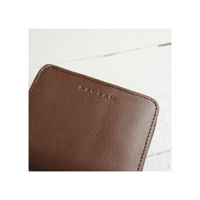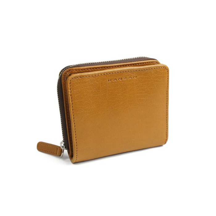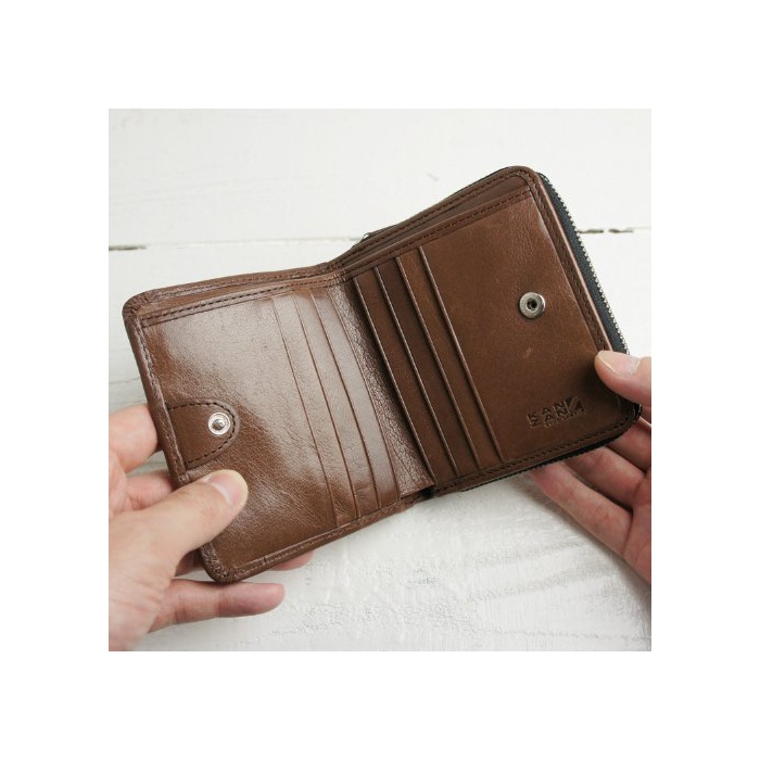 [캔 더] KANZAN 가죽 지갑 반 접기 라운드 패스너 버팔로 레더