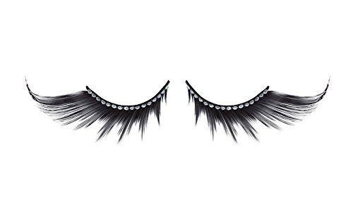-. Feature : made with synthetic hair / color: black / each band is decorated with 16 clear acrylic rhinestone / the lash is 5mm to 3.2cm long / 1 pair of premium quality lash