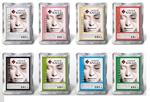 Enjoy 8 different types of rubber mask - Collagen, Green Tea, Vitamin, Arbutin, Aloe, Oily Skin, Charcoal and Cool