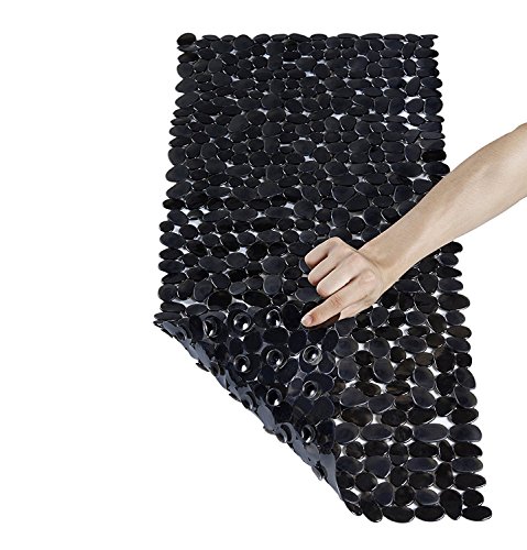 Anti-Slip Anti-Bacterial Stone Bath Mats,Slip-Resistant Shower Mats, Machine Washable (Black, 14"W x 27"L)