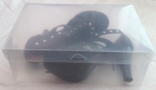 - Feature : Price is for 3 fold-able clear container boxes for shoes and many other things. Elegant and simple way to organize your closet and storage. Eco-friendly, harmless, transparent material to make footwear and many valuable collections visible, see it and find it because you can see through without opening the box. Online lowest price. Simple assembly required. / Each container measures approximately 11.81" long x 7.09" wide x 3.94" tall. The container is made from durable PP polypropylene, the space-saving, stack-able, clear boxes are ventilated and mold resistant. Perfect for protecting your shoes and many other things! The thickness of the box material is about 0.8mm, not a hard solid box but strong enough to hold any shoe or other valuables and stack-able. / Top opening for easy access without loosing the lid ever and protect things stored inside against dirt and dust. Perfect storage container for other items such as shoes, craft tools, cosmetics, and fashion accessories.