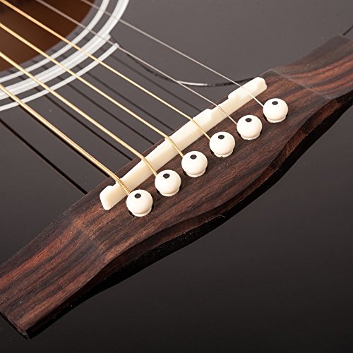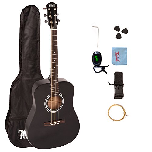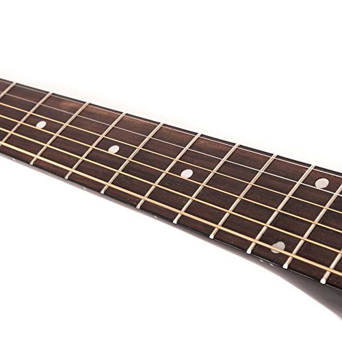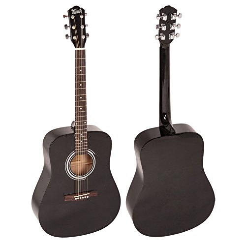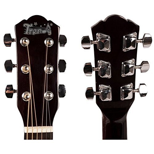 The 41 inch acoustic guitar is perfect for the beginner student. The Guitar features Linden body, ABS binding and geared tuning. This Acoustic Guitar set also features everything you need to get started with your Guitar. The set includes a full set of extra strings, gig bag, carrying strap, Guitar picks, guitar stand, capo and polishing cloth. This Acoustic Guitar set makes a great gift and is a great value for the money!