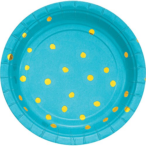 Bermuda Blue & Gold Hot Stamped Paper Dessert Plates (8 ct)
