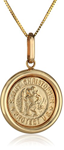 14k Yellow Gold Italian Saint Christopher Round Medal Pendant Necklace, 16"