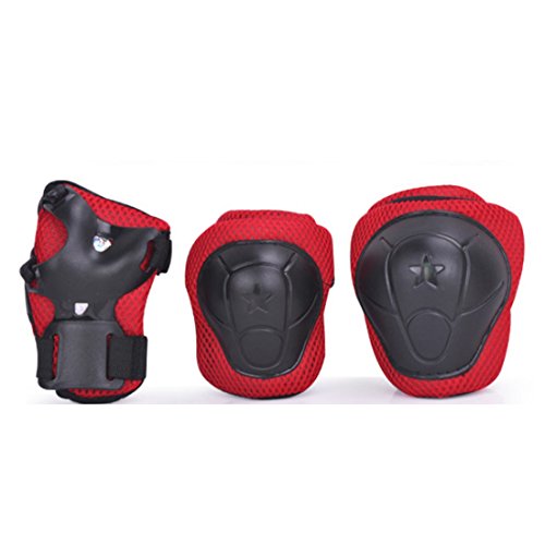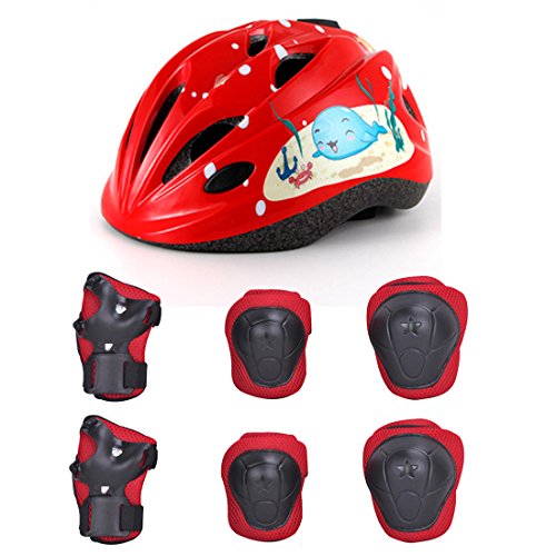 -. Feature : Material :Made of PC+EPS material that is eco-friendly, nontoxic, comfortable, adiabatic, sweat absorbing, breathable, durable. It provide your kids a good experience. / Provide protective: The adjustable straps behind the pads offer a flexibility for your kids .The shockproof shell above the knee elbow wrist pads keep your children away from danger while enjoying all kind of sport activities. / Idea for design: Bright happy colors with cute pattern let your child full of courage and energetic,to develop love for nature. / Suitable for sports: Skating, Bicycling, Scooter, Skateboard, Rollerblades, Other Outdoor Activity. / Size including: S: Suitable for 3 to 6 years old, M: Suitable for 7 to 12 years old.