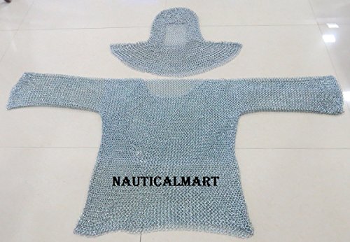 -. Brand : NAUTICALMART -. Color : Silver -. Department : mens -. EAN : 3831330855346 -. Feature : Full-sized and Wearable / Made with 1/2" Butted 18 Gauge Steel Rings / Handcrafted - Slight Differences in Finish and Size May Occur / Coife Included / Great Costume or Display Piece -. ProductGroup : Apparel -. ProductTypeName : ADULT_COSTUME -. Size : Large -. Title : Chainmail Shirt and Coif Set By Nauticalmart