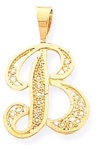 ICECARATS DESIGNER JEWELRY 10K YELLOW GOLD SCRIPT INITIAL MONOGRAM NAME LETTER B PENDANT CHARM NECKLACE