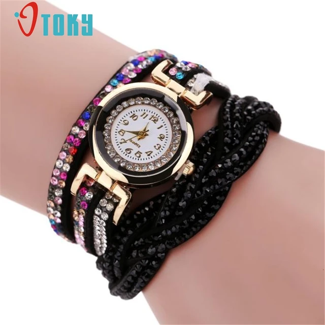 | [해외] OTOKY 석영 여성 시계 크리스탈 손목 숙녀 가죽 캐주얼 팔찌 시계 reloj pulsera #10 선물 1 개 |